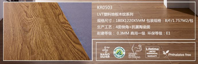 耐磨等級(jí):0.3MM商用一級(jí)  環(huán)保等級(jí):E1